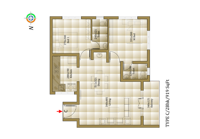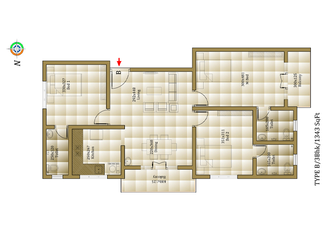 | Balcony | Terracotta/Vitrified Tiles |