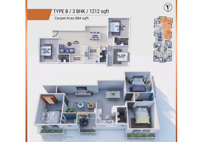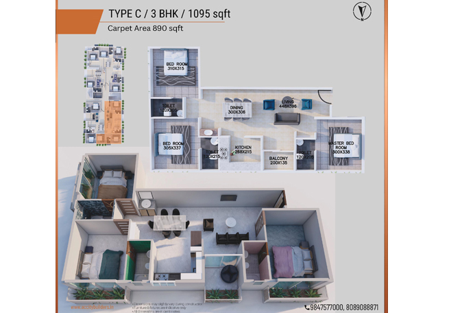 | Balconies | Terracotta/Vitrified/Antiskid Ceramic Tiles |