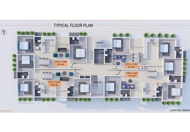 | Lobby & Main Staircase | Granite/Vitrified Tiles |